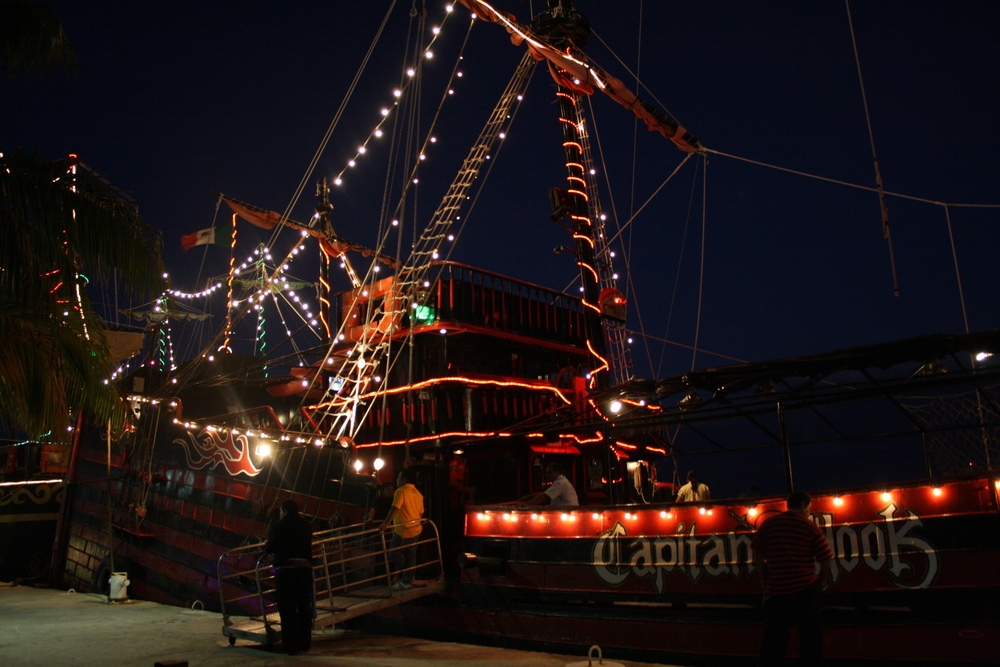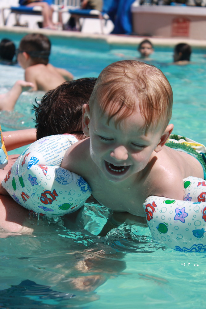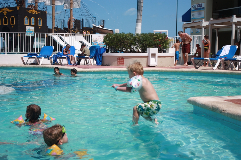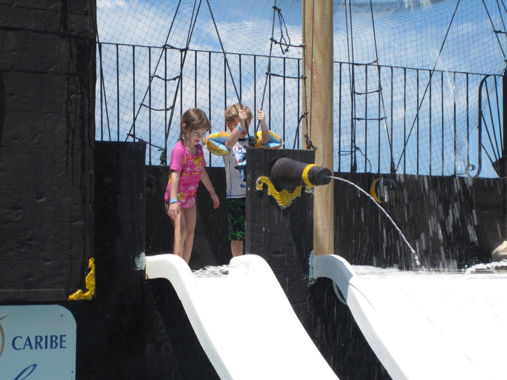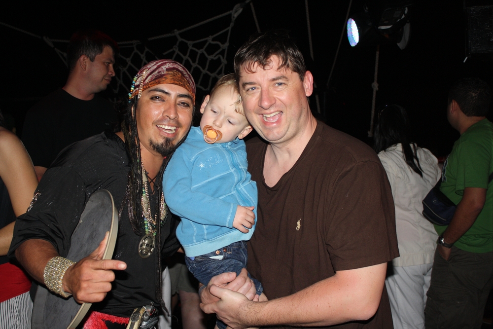 We didn’t really leave the resort, with the exception of one pirate cruise and one evening dinner at Senior Frog’s. We spent the rest of the time either in the pool or at the beach. There was no lack of fun as there were two pools and one had a pirate ship and water slide. Bas went down the waterslide by himself so many times that it was impossible to count. Willem, we discovered, is a better swimmer than either Bas or Ineke, and absolutely loves the water. And finally, Ineke jumped into the pool and got her face wet! Ineke rather liked the large pool (more aimed at adults, but kids were allowed everywhere) because they played dance music there, but I found the water a bit chilly. The kids pool was salt-water and warm like a bathtub!