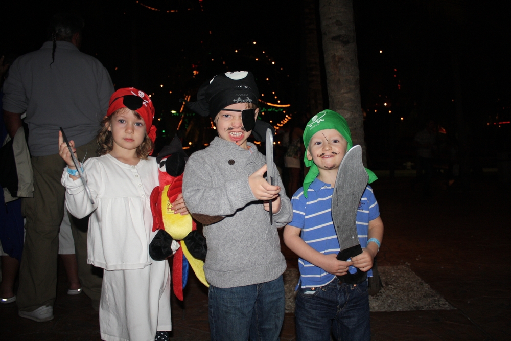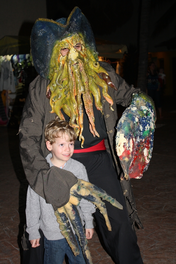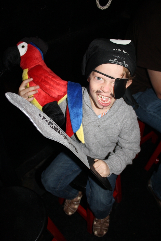We decided to try out a Pirate Ship dinner cruise on one of the first evenings. We couldn’t have picked a better activity for Bas! He was sooooo excited. Captain Hook’s boat was complete with most of the cast from Pirates of the Carribean and they were great with the kids. Calypso painted their faces to match their pirate outfits. Ineke even found a new friend, a pirate parrot! The ship left port and the actors provided great entertainment all the way out to where we dropped anchor. We then had a lobster dinner followed by more entertainment including being invaded by another pirate ship and watching a full-blown sword fight right in-front of us. The evening was finished by lots of dancing. Really a great evening!
