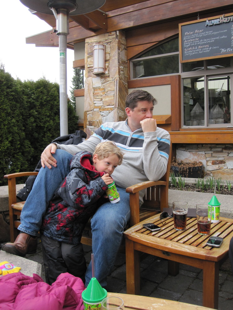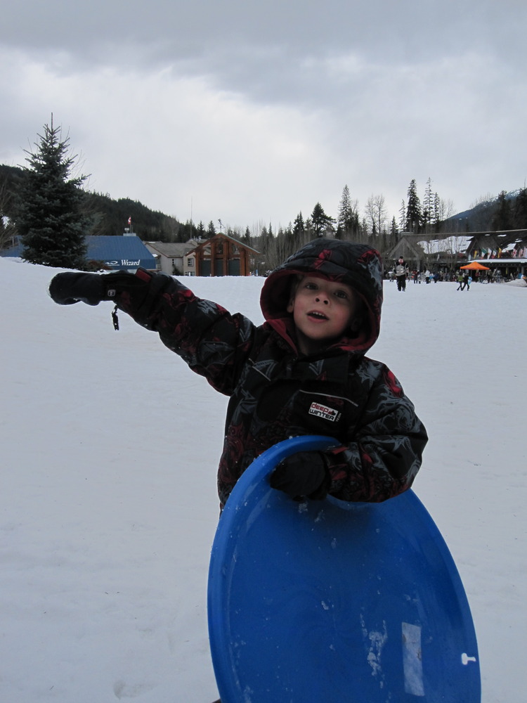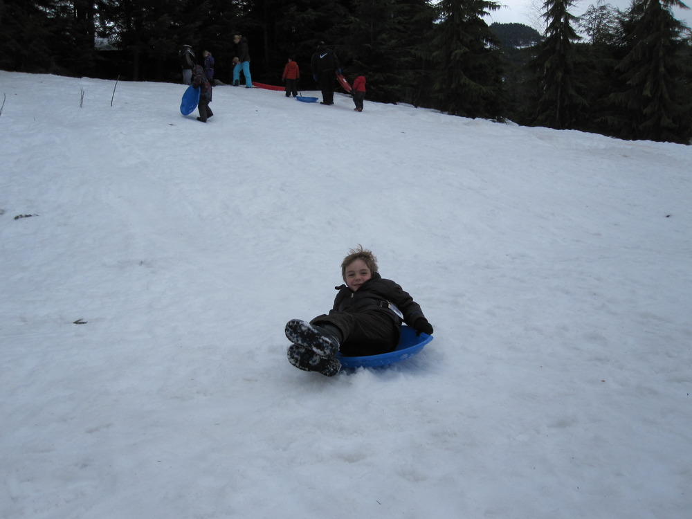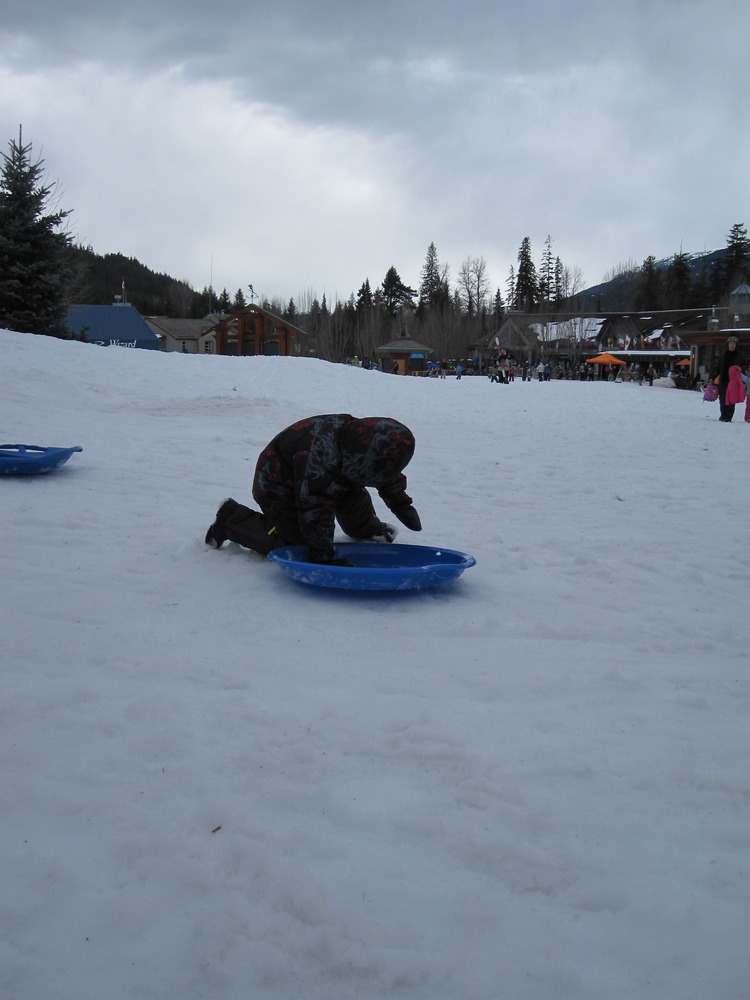 We decided last-minute to drive to Whistler for the weekend. The weather forecast was for sun and gorgeous spring snow conditions. We didn’t make it skiing, but the kids did hit the toboggan hill pretty hard…especially Willem! The shiner he has is now rainbow coloured, but they sure had a blast!