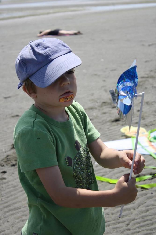 A few exciting things have happened this weekend. We almost didn’t have water…but that problem was solved quickly and we were back to normal. Then today on the beach, after months and months of asking if there is wind, finally Bas could fly his airplane kite. I can’t tell you how exited he was when the box was opened and the kite came out. Willem adopted Ineke’s Tinkerbell kite, but Chris blamed it on the purple pull-ups that he was wearing!
