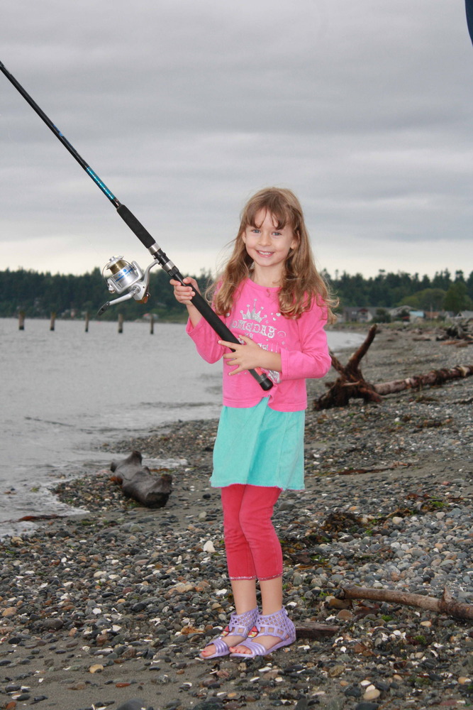 Well, as usual in Vancouver, the June weather feels a bit more like January…maybe March. We are at the cabin for the third weekend and we are still waiting for summer weather. Fortunately, the kids don’t seem to mind much and it doesn’t affect their activities. Yesterday, Chris too, the kids fishing. Ineke loved it because, “I love watching the waves and chatting!”