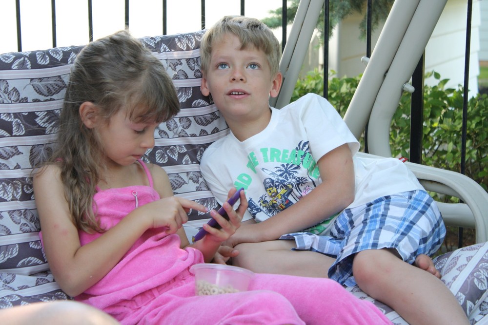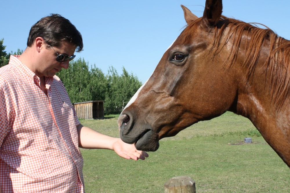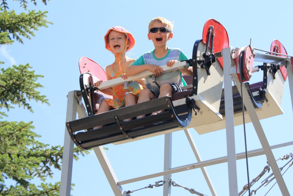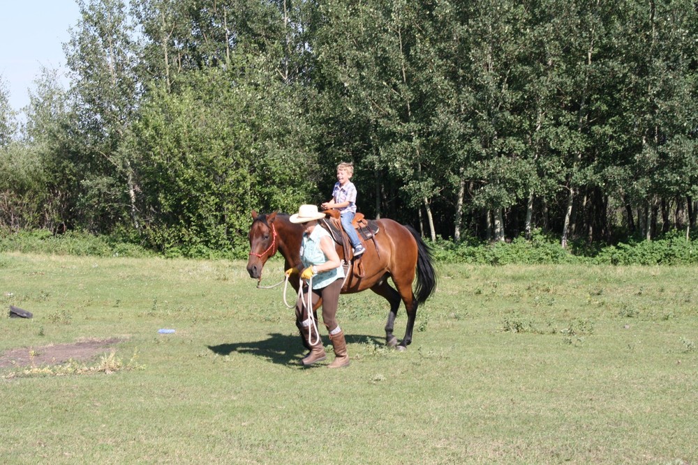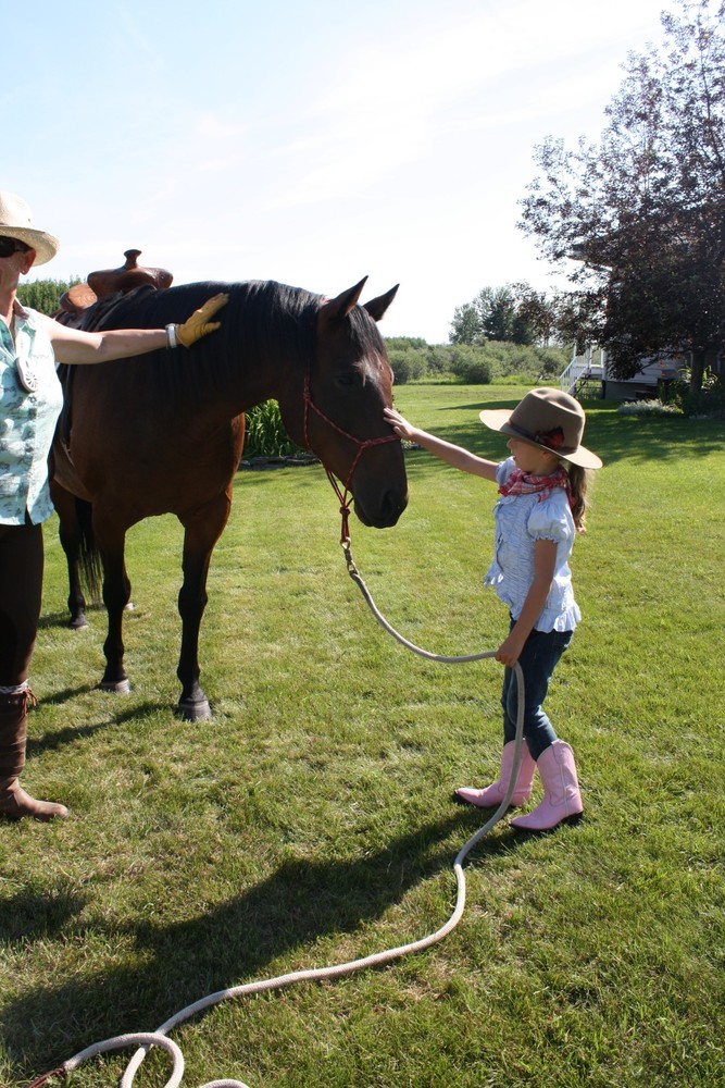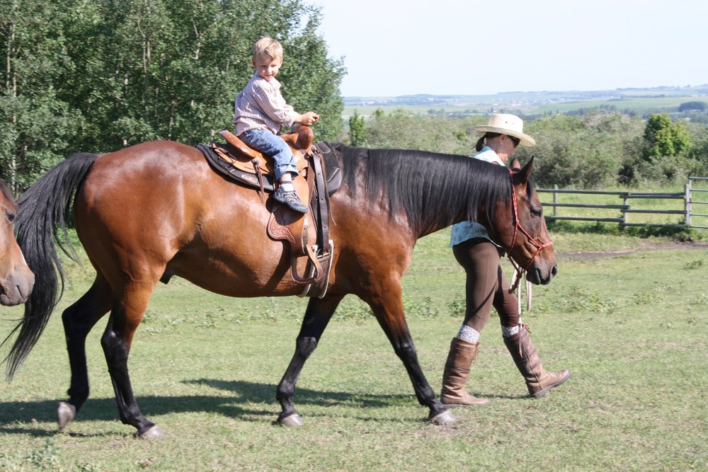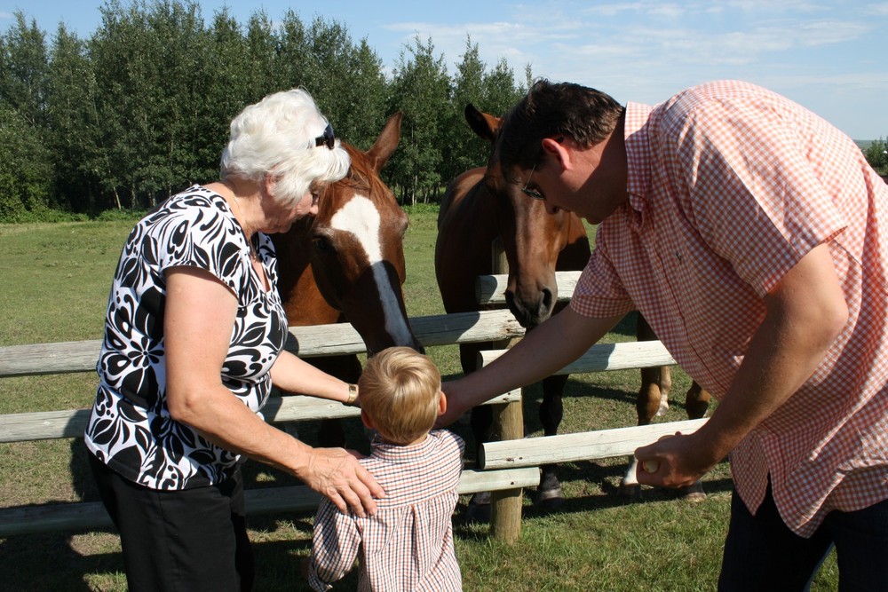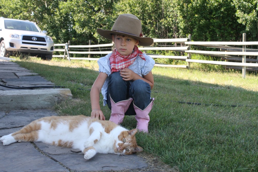 It has been many years since we’ve been to the Stampede in Calgary and it seems that we couldn’t have picked a better year to attend. It is the 100th anniversary of the Stampede and they are having record attendance at the fair. The weather is absolutely stunning with temperatures around 30 degrees. So far, we’ve visited with Oma and Opa ter Keurs, Grammie and Grandpa, Heather, and Oma Dolphin and Opa. Chris took the kids to the Stampede grounds on Sunday where they enjoyed lots of rides and saw some of the animals. We then spent a fantastic day at Heritage Park with Oma riding on old-fashioned trains, boats and fair rides. Yesterday was jam packed with activities like the waterpark and playground at South Glenmore and ice cream at DQ! We also had some time to just chill out and relax in the summer weather on Grammie’s swing. We then drove to Okotoks where we stopped off at In Cahoots for a quick beer and then off to Heather’s house where we fed her horses and went for a ride. The kids really enjoyed riding the horses, but Ineke, in particular, was in love with them. Such a treat!
