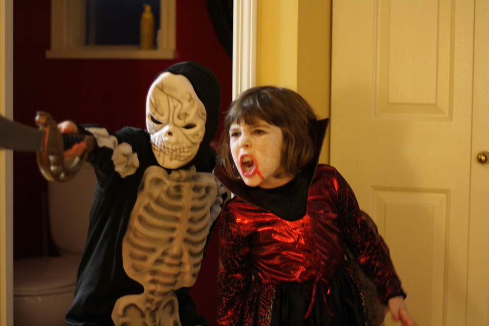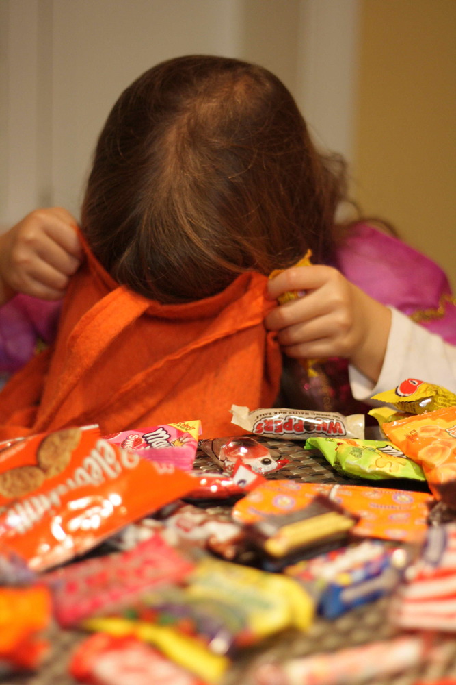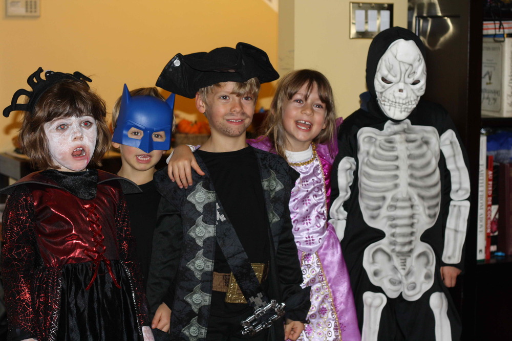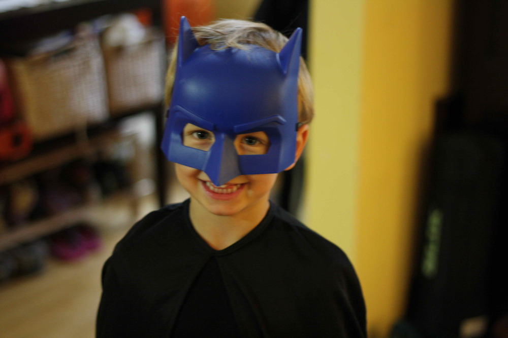 OK, well our kids aren’t too into scary costumes. In fact, Willem isn’t even sure about costumes at all. He usually ends up wearing his for about 5 minutes. We had a small disaster because when Willem went to school on Wednesday morning, he was Darth Vader. When he returned, Darth Vader had disappeared. Somehow in the preschool, the mask had gone missing. I’m sure it will turn up, but it made for a very sad little boy when he realized that he wasn’t going to go trick-or-treating as his favourite Star Wars character. Fortunately, he was also fine with wearing a batman mask (from last year) and just telling everyone that he was Darth Vader. hahaha!! I thought it was so cute.