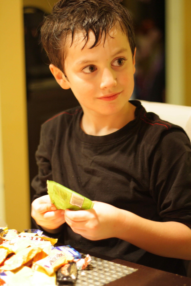The evening started with a visit to Gogo’s house for a costume parade and special treats. Then back at home, Lucas and Ella joined us for some mac and cheese before heading out in the heavy rain with our Irish neighbours down the street, Lola and Leo, for trick-or-treating. They returned a couple of hours later, bags heavily laden with every kind of candy imaginable.