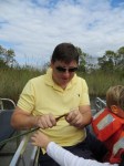 The guide steered us through lots of glades where we even saw a baby alligator (apparently quite rare) and lots of larger full-sized ones in their natural habitat. After the boat ride, we headed back for an educational show with one of the conservationists and a photo opp with baby “Snappy”! On the drive back home we stopped at a roadside outdoor restaurant that served “gator bites” and frog legs. Yes, that is Bas in the photo quite enjoying the frog legs. Naturally, we told him it was chicken!