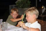 On Wednesday, Oma and Opa arrived! Everyone was very excited when they met us on the beach. Thursday morning started off with a trip to “Pirate Island” in the boat with Opa and Oom Rob. The kids arrived on shore with swords and shields, ready to fight the pirates. Fortunately, the pirates had fled by the time we got there, but not without first burying their treasure. Thanks to the keen eyes of pirates Ineke, Bas and Wimwim, they found the X in the sand and dug up a whole box of gold coins—chocolate of course! Chris even managed to do some fishing although much to our disappointment, he didn’t catch anything!