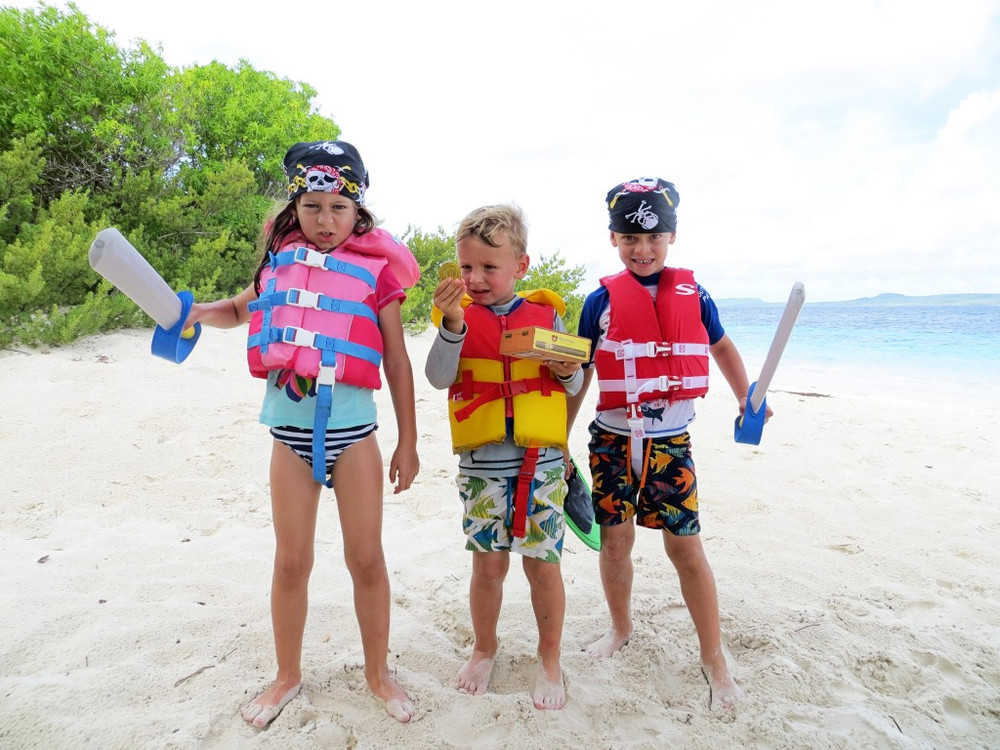 On Wednesday, Oma and Opa arrived! Everyone was very excited when they met us on the beach. Thursday morning started off with a trip to “Pirate Island” in the boat with Opa and Oom Rob. The kids arrived on shore with swords and shields, ready to fight the pirates. Fortunately, the pirates had fled by the time we got there, but not without first burying their treasure. Thanks to the keen eyes of pirates Ineke, Bas and Wimwim, they found the X in the sand and dug up a whole box of gold coins—chocolate of course! Chris even managed to do some fishing although much to our disappointment, he didn’t catch anything!